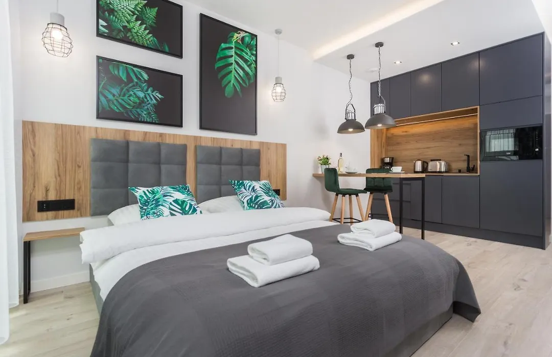 City Of The Kings - City Point Green - Rajska apartment features rooms with a television with satellite channels, a TV and a balcony for guests' comfort. They are fitted with a mini-kitchen and a shower, a roll-in shower and a walk-in shower. The night area offers 1 bedroom to accommodate 2 guests. For your comfort, you will find a roll in shower, a sink and bath robes.